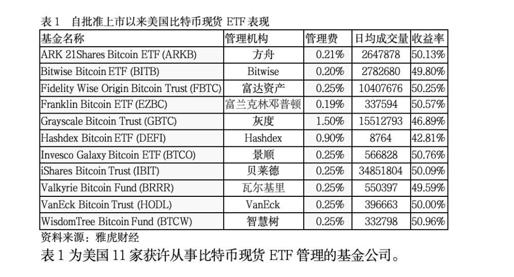 目前看来,从事比特币现货ETF管理的基金公司实力差距较大。从收益看,自年初以来,比特币现货基金收益率大致相同,唯有Hashdex和灰度(GBTC)表现略低于大市表现。但从每日成交量(基金单位)看,这些基金表现迥异。最受投资者欢迎的是大牌基金公司旗下基金,如贝莱德、富达资产和灰度,其他基金则受到冷落。从管理费看,大部分基金收费标准相同,唯有灰度和Hashdex收费标准高于平均值。