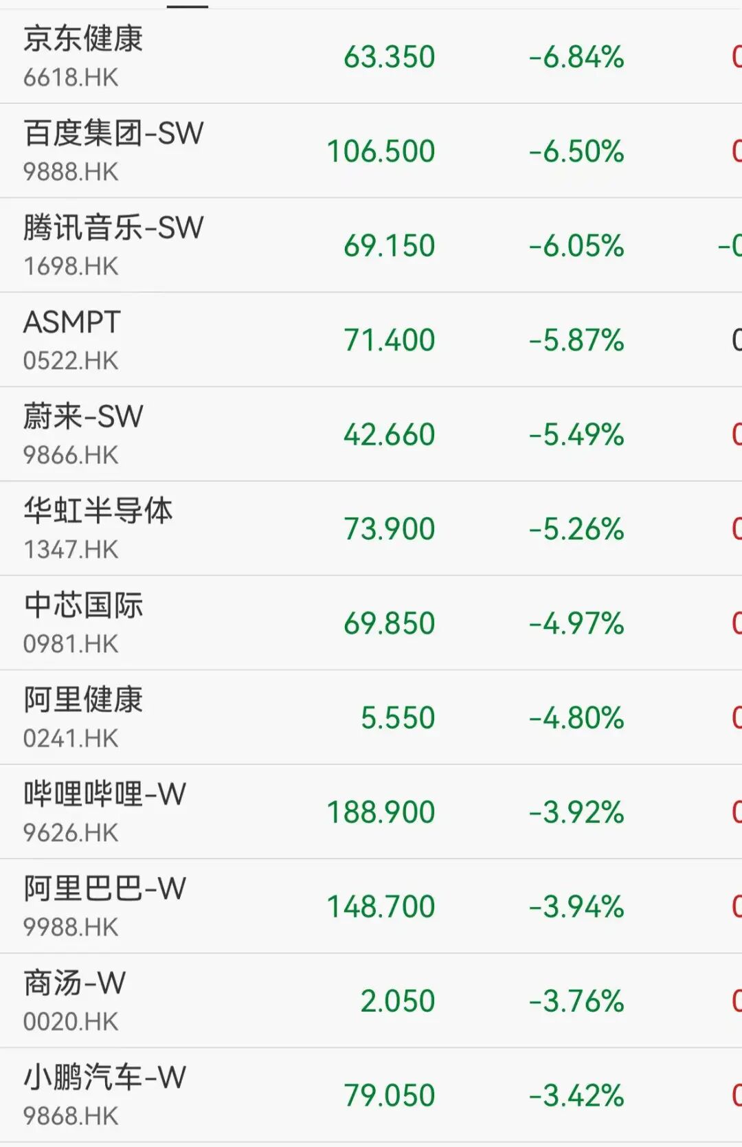 港股方面,截至发稿,恒生指数跌超2%,恒生科技跌超3%,京东健康、百度、腾讯音乐跌超6%,中芯国际跌近5%,阿里巴巴跌近4%。