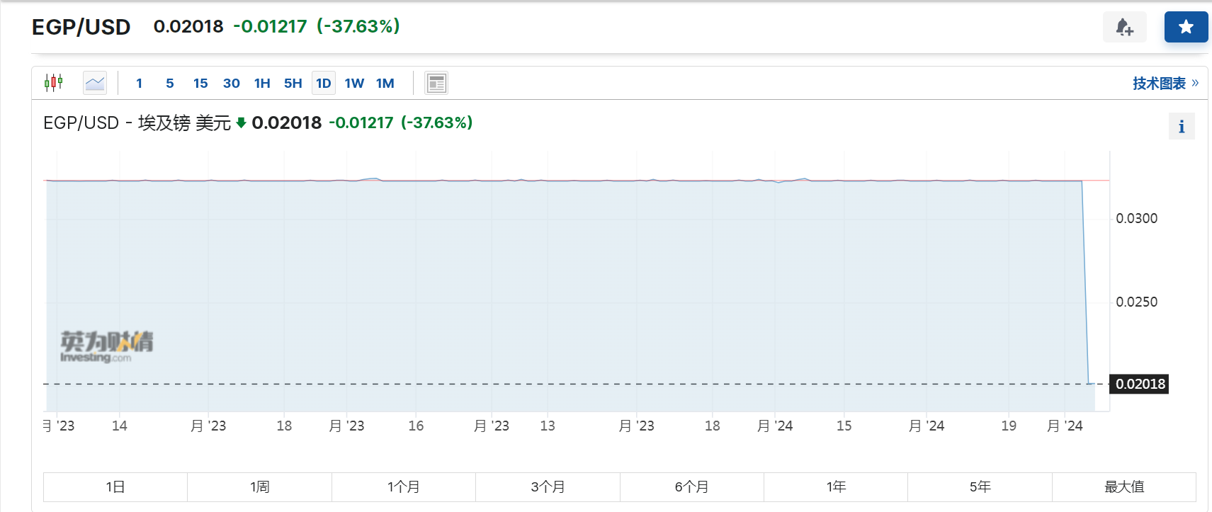 当地时间3月6日,埃及货币埃及镑突然,埃及镑兑美元汇率一度暴跌近40%,一度跌至1美元兑50.55埃及镑,创历史新低。