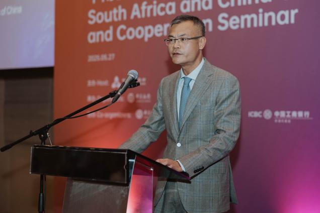 中国驻南非大使馆公使郑冰开在致辞中指出,中南经贸合作成果丰硕、前景广阔,金融领域交流日益紧密,希望各方持续加强务实合作,推动中非合作高质量发展。2025年是中国银行约翰内斯堡分行成立25周年暨担任南非人民币清算行10周年,中国银行约翰内斯堡分行行长张朝阳在致辞中表示,中国银行约翰内斯堡分行将继续立足南非、辐射非洲,为中南、中非经贸合作贡献更大力量。
