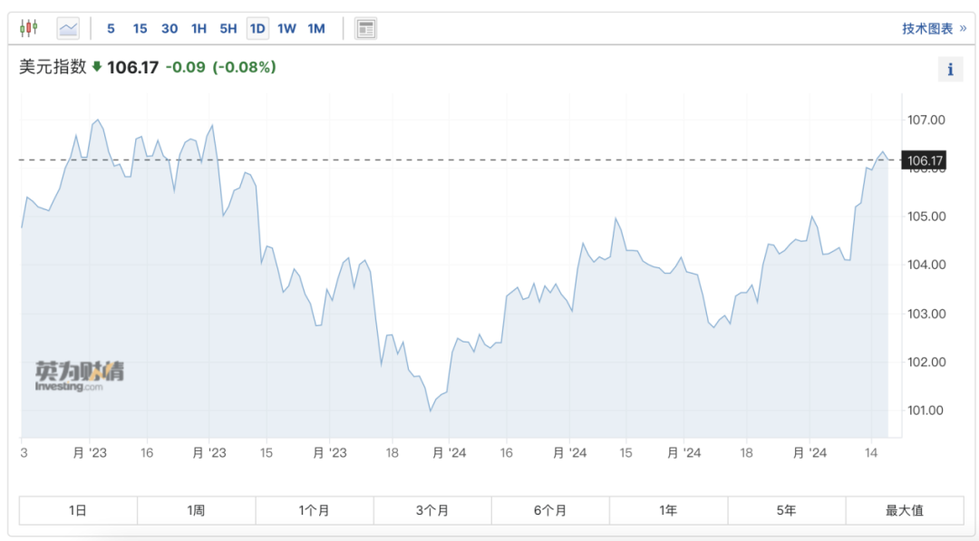 受美联储主席鲍威尔的“”讲线日,美元指数再度狂飙,一度涨至106.5上方,连续三日创五个月来新高。