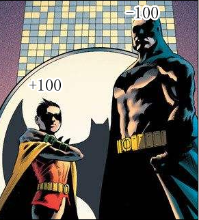 比如说,总是穿着奇装异服做好事的布鲁斯韦恩给了他同样爱穿奇装异服做好事的儿子达米安韦恩一百块零花钱。这就相当于,布鲁斯的资产减少了100元,而达米安的资产增加了100元。如下图: