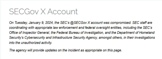 但SEC强调,没有任何证据表明该黑客获得了SEC系统、数据、设备或其他社交媒体账户的访问权限。